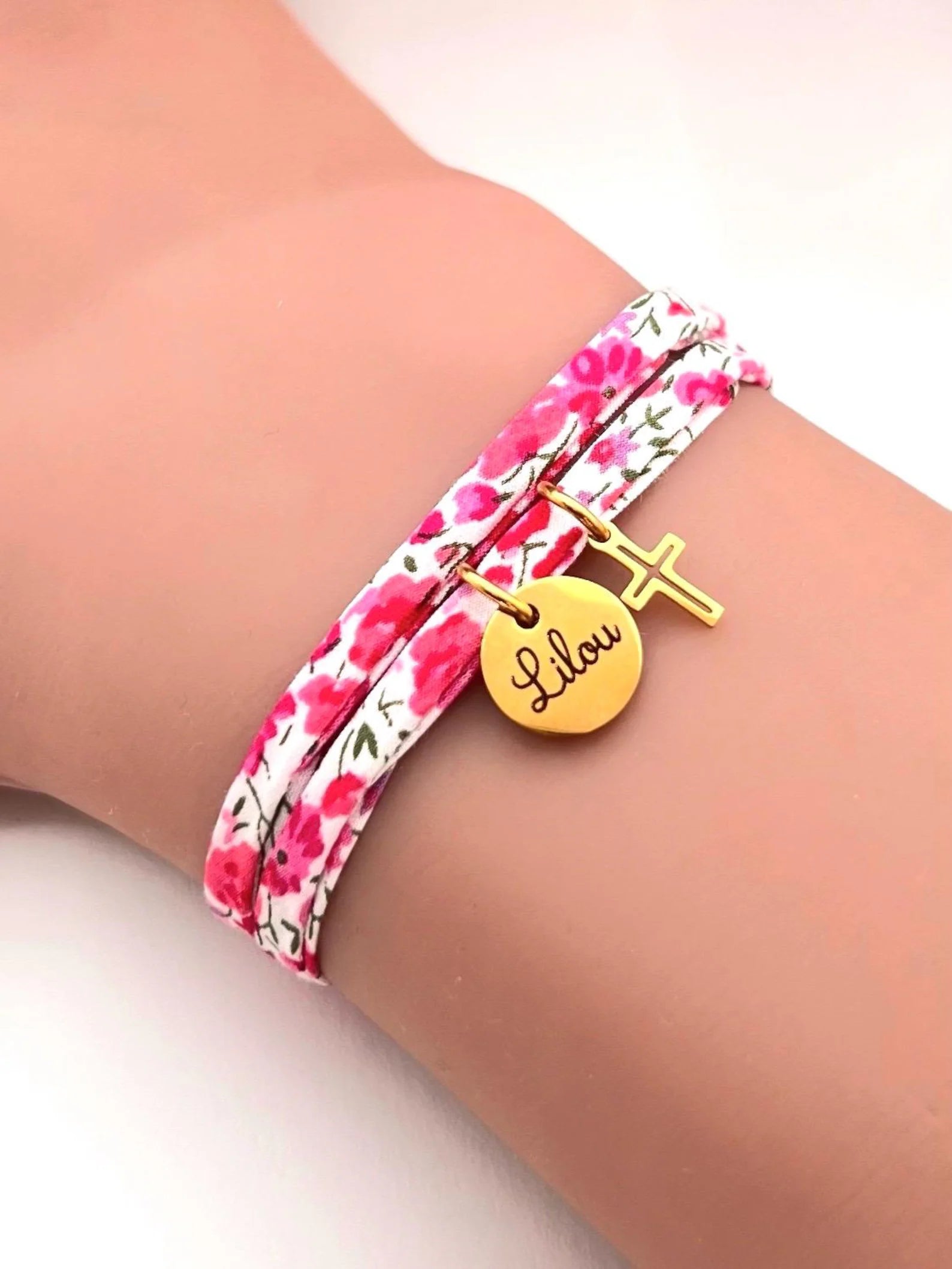 Bracelet Lola en cordon liberty - cadeau personnalisé communion, profession de foi